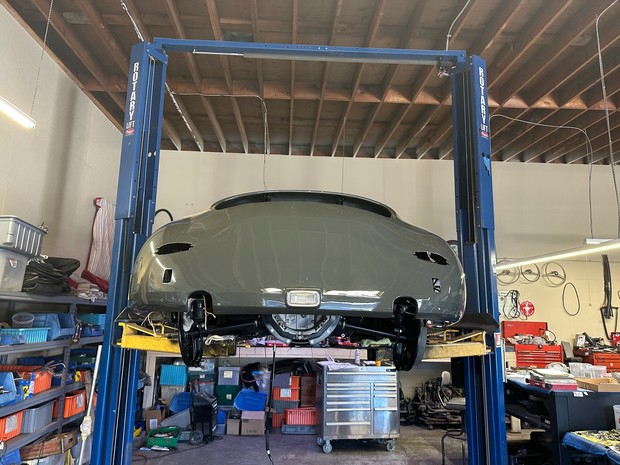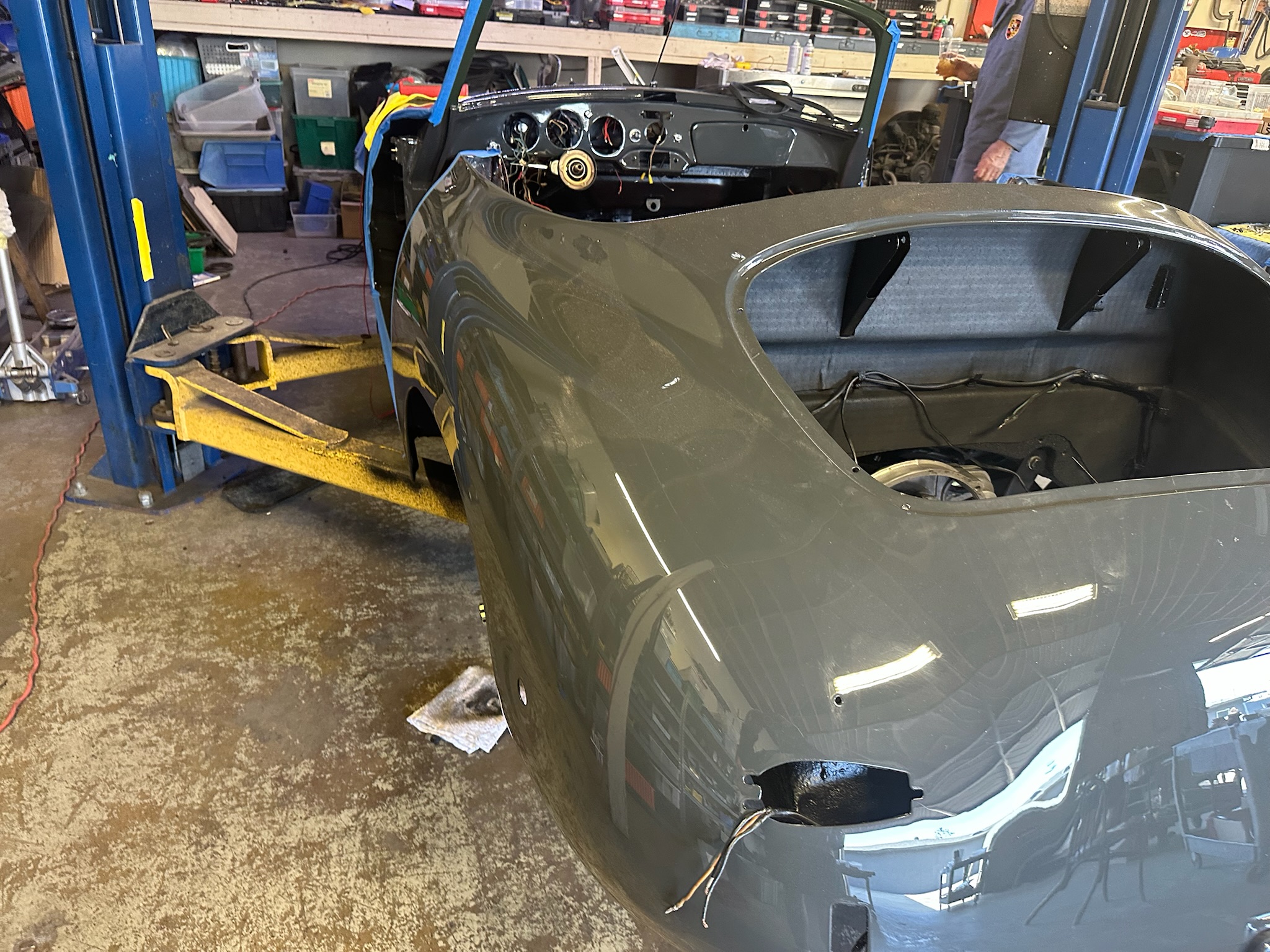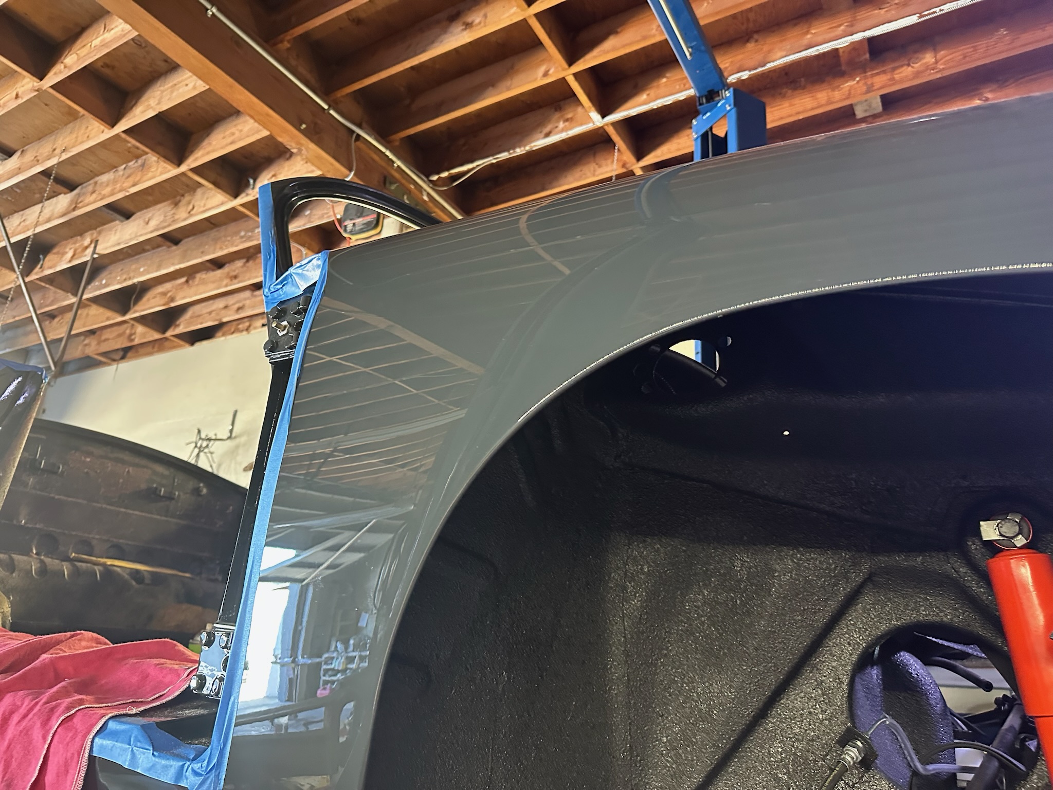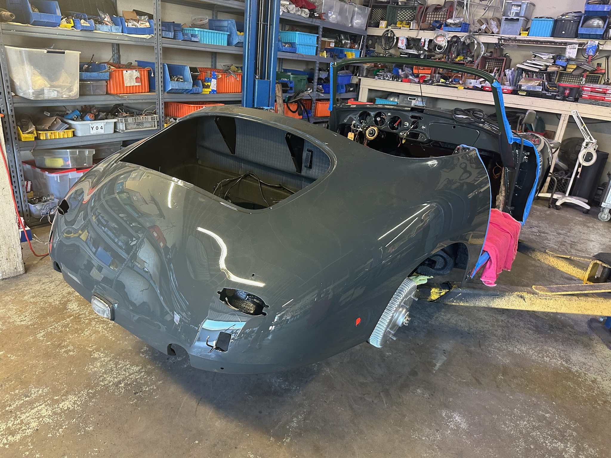 Purchased out of Idaho and being put back to its original Slate Greay with Green interior. This is a 100 percent restored car, motor, transmission, suspension, body, and interior. Probably 30 days from completion. Just in time for Christmas.